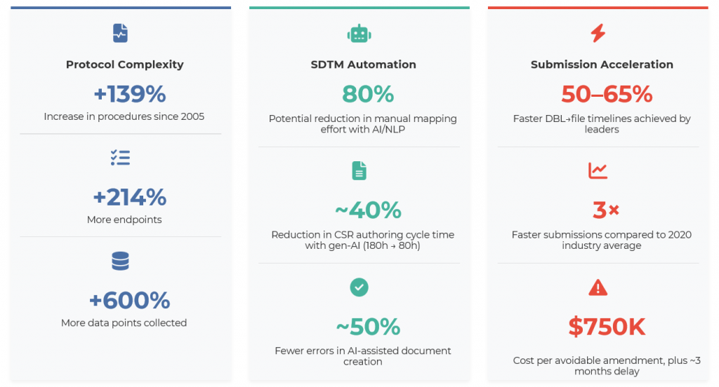 AI-accelerated document creation, formatting, and regulatory communication to compress filing timelines.